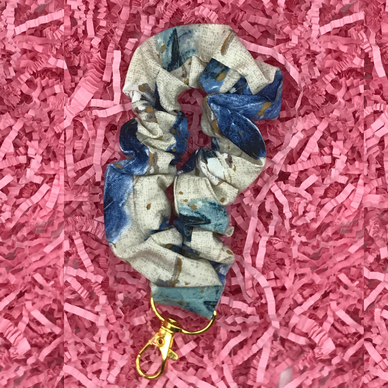 Blue feather scrunched wristlet