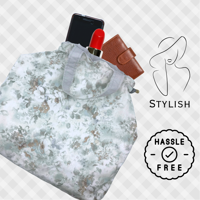 Elevate your style with the Silver Whisper drawstring handbag, crafted from shimmering silver fabric adorned with delicate silver flowers. Its elegant design combines practicality with a touch of sophistication, making it the perfect accessory for both day and night. Lightweight and easy to carry, this handbag adds a subtle sparkle to any outfit while keeping your essentials secure and within reach. Make a statement effortlessly with Silver Whisper.